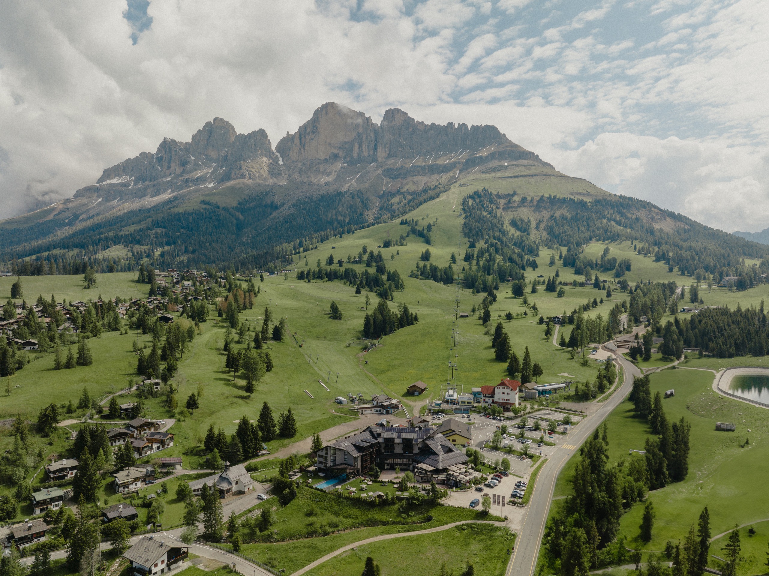 Auf 1650 Metern thront die Alpenrose zwischen Rosengarten und Latemar mit spektakulärem Panoramablick. Der Sessellift Paolina startet direkt vor der Haustür.