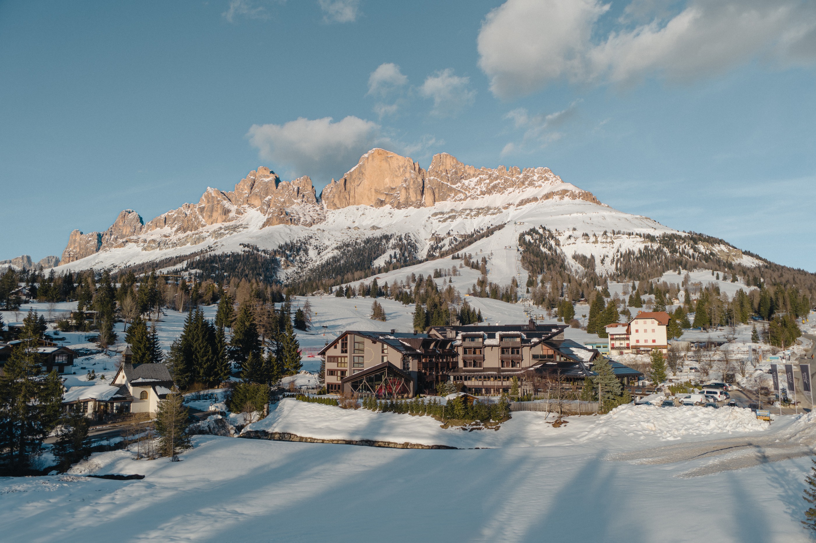 At 1650 meters the Alpenrose sits between Rosengarten and Latemar with spectacular panoramic views. The Paolina chairlift starts right at the doorstep.